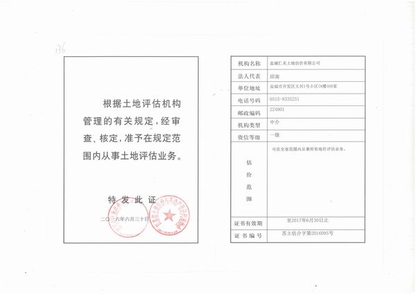 - 土地評估資質(zhì)證書